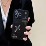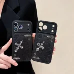Experience the perfect blend of luxury craftsmanship, gothic artistry, and premium protection with this exquisitely designed leather iPhone case. Created for those who appreciate bold aesthetics, this case stands out with its deep embossed patterns and hand-finished metal cross accents, giving your phone a distinctive, high-end look.